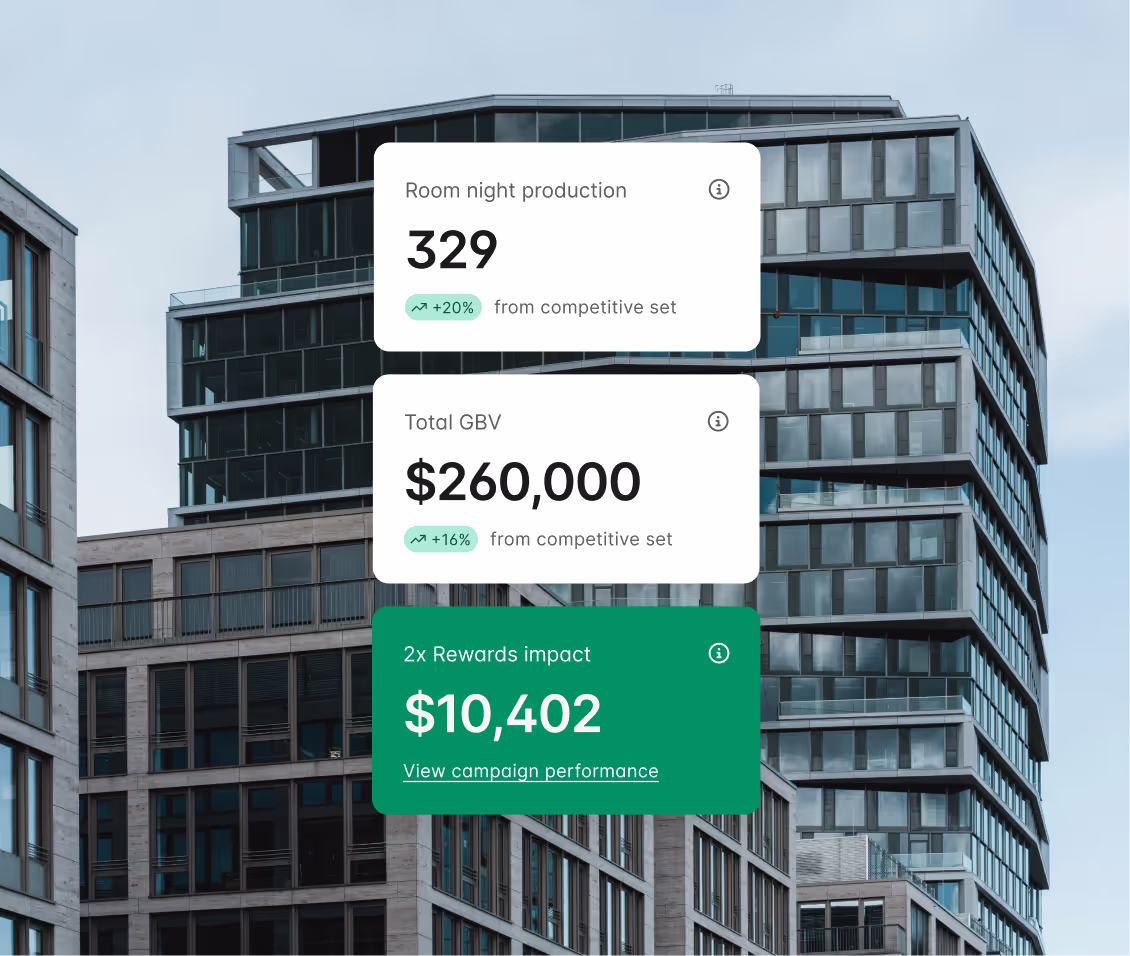 Hotel performance insights dashboard with charts and cards