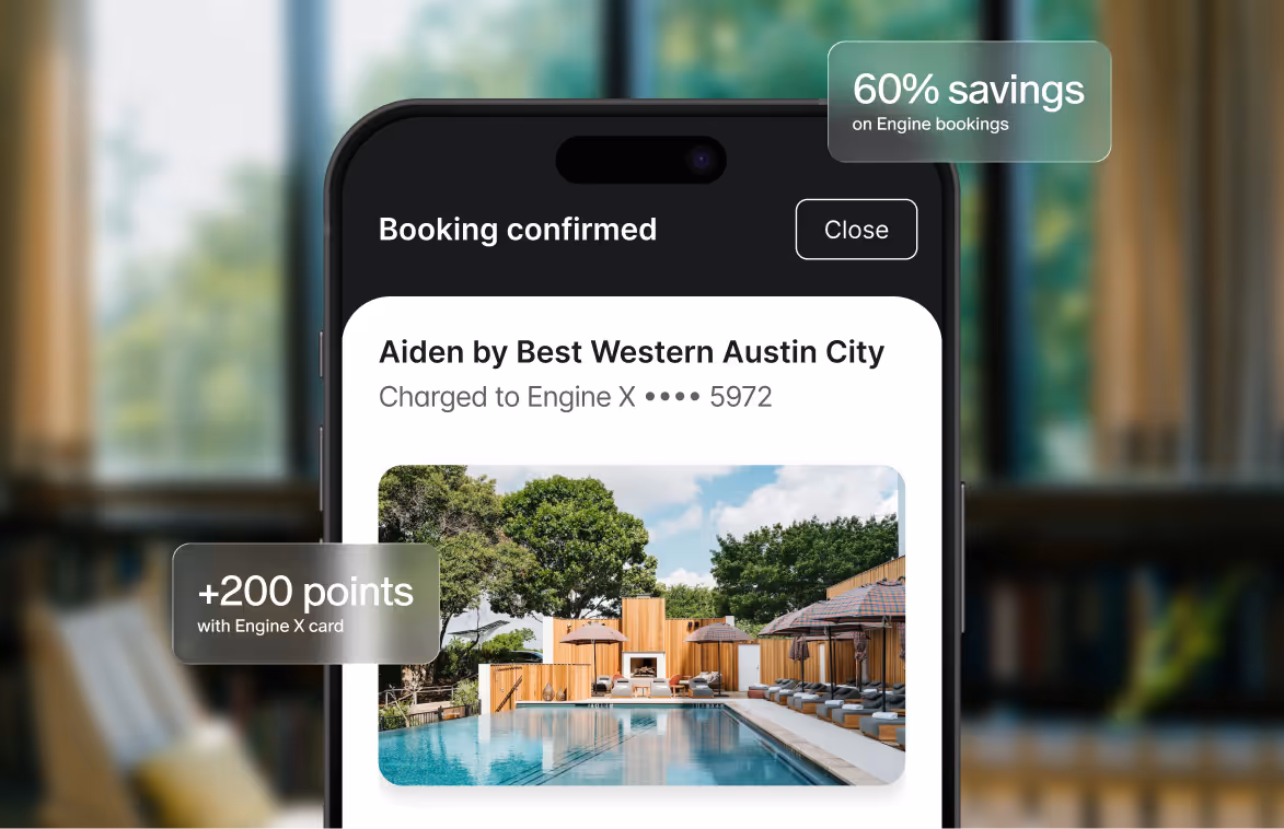 With up to 60% off hotels and up to 10% back on Engine X purchases, you can make more out of every dollar spent on business travel.1